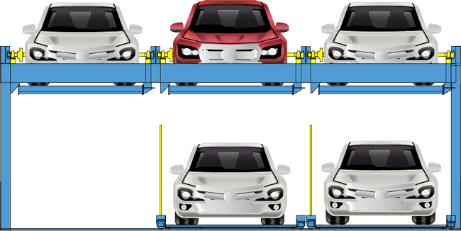 簡易升降類停車設備在各類車庫中具有停車密度高、對場地要求低、噪聲小、結構簡單、使用方便、出車速度快、地面無遮擋等諸多優點,使地面使用效率大大增加,有限的空間可成倍的停放車輛。下面展示的兩層簡易升降停車設備構造簡單、緊湊,經濟適用,采用PLC控制,多種操作方式,存取車容易,布局靈活,節能降耗,設備所需電源220V,所以不僅適用于大型車庫、停車場,也適用各個家庭用戶。