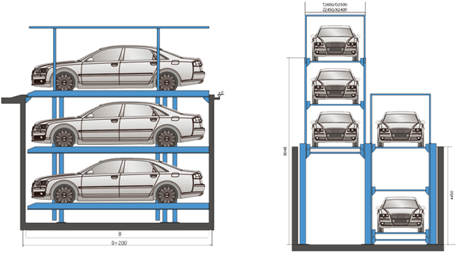 升降橫移類機械式停車設備是停車行業應用廣泛的一類停車產品,型式比較多,并且可以采用地面上結合基坑的形式,此類設備對場地的適應性較強,對土建要求較低,可建在露天,也可建在大樓的地下。規模可大可小,可根據不同的地形和空間進行任意組合、排列,空間利用率高,設備穩定可靠,存取車快捷,使用維護簡便,價格較低。